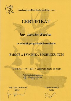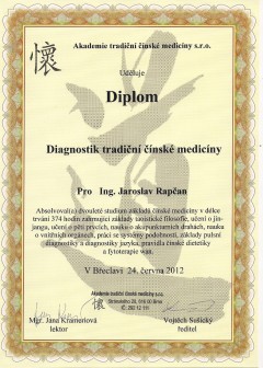 Som absolventom 2. ročného štúdia Tradičnej čínskej medicíny na Akadémií TČM Brno - diagnostik TČM, v súčasnosti navštevujem nadstavbové vzdelanie v odbore Fytoterapia z pohľadu čínskej a antroposofickej medicíny.